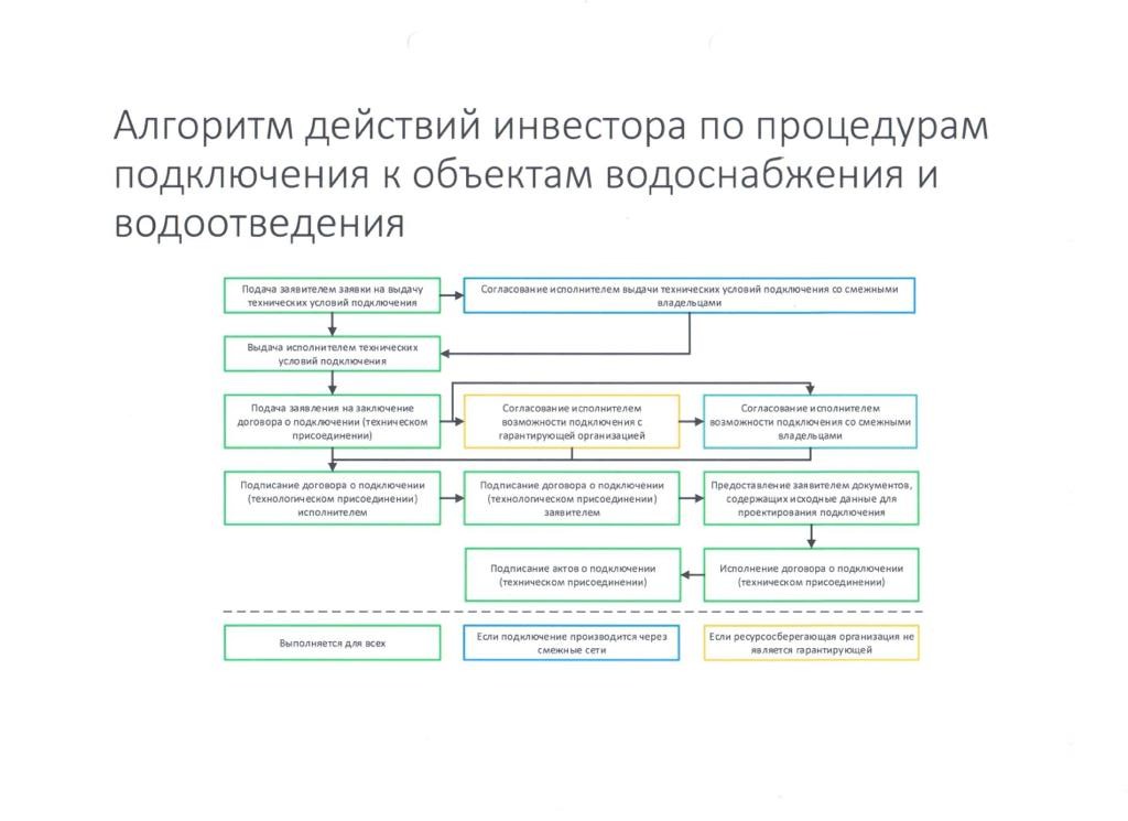 Алгоритм действий инвестора по процедурам подключения к объектам водоснабжения и водоотведения